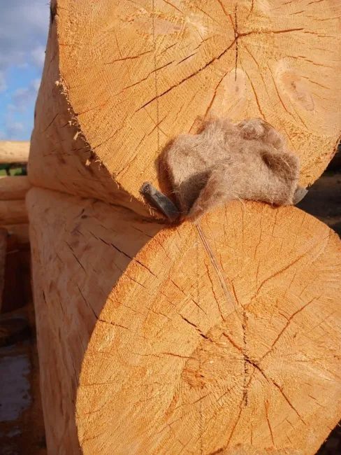 Provádíme tepelný šev srubu, tento tmel je nanesen mezi kladové spáry dřeva, slouží jako doplňkový prvek izolace stěn a zvenčí zabraňuje pronikání vlhkosti do suchého dřeva ve vlhkém počasí.